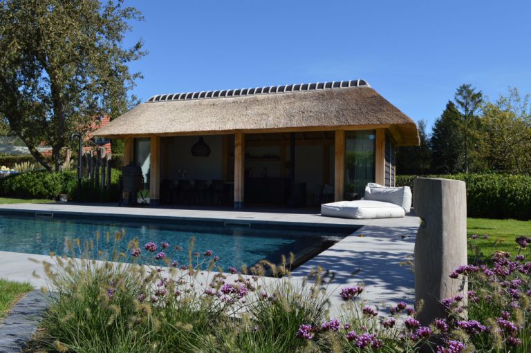 - Zwembad: Kies voor een natuurlijke vorm met terracotta of natuurstenen rand.